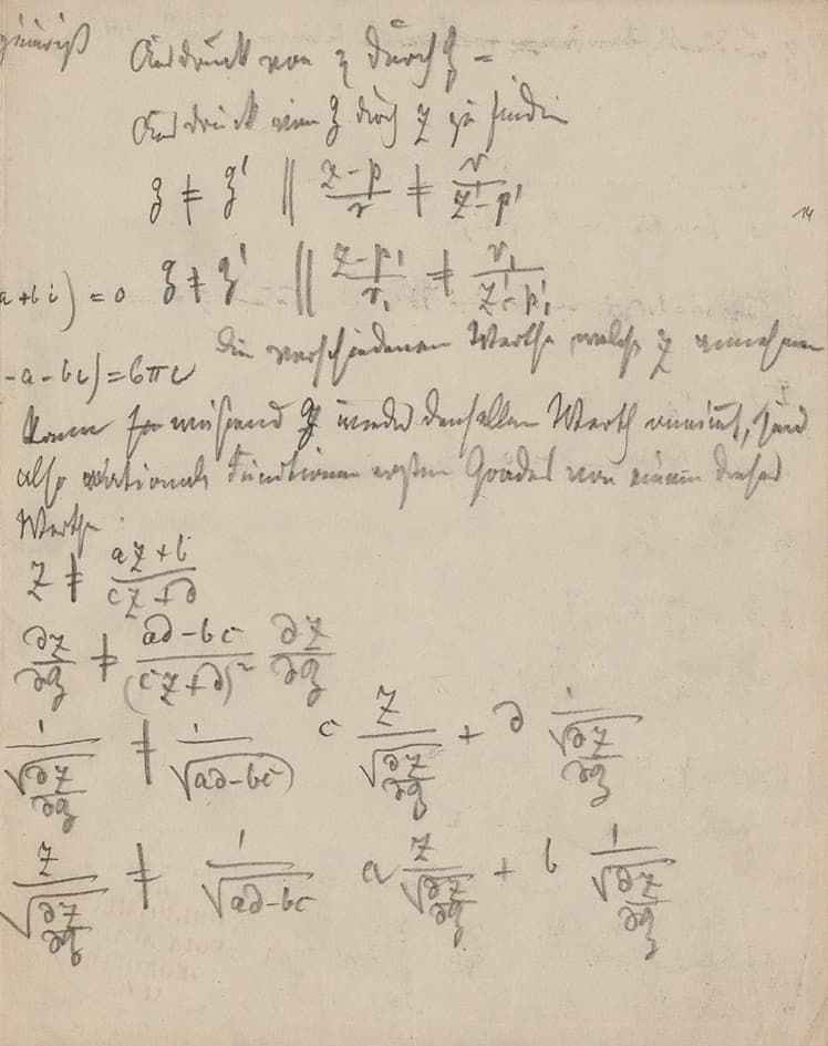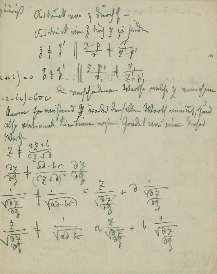 In Cod. Ms. Riemann 14, we find the 15 pages of Riemann’s original manuscript, two handwritten transcriptions, the handwritten text for Dedekind’s 1876 commentary and the version sent to the editor, some notes written by Weber, the 1876 letters between Dedekind and Weber relating to that text, and one of Dedekind’s early works on elliptic functions, which he intended to use to understand Riemann’s ideas and likely sent to Weber with one of his letters.