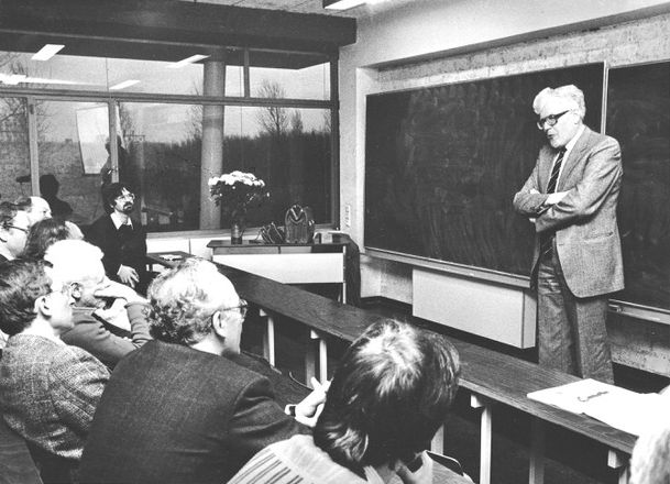 Murre was a tall fellow, somewhat of a giant, and given his modesty it was inevitable that he was a bit stooped. I do not recall whether his mop of hair was already white at that time, anyway he would never lose it, only its color. He spoke slowly, with, I recall, a very light lisp; but his most notable feature was his modesty. He was a genuinely kind human being, who at times carried his kindness to an almost absurd length, with the complications due to logical contradictions this inevitable entails. 2Examples of which float around in the community. If an explicit example be required, I can only in my own case on top of my head refer to the time I had sent him a photo of him, which I had printed and enlarged. He thanked me profusely and admitted that it was such a pleasant surprise, as he had thought it was just an article of mine. So that is what he thinks of my mathematics I thought, obviously not hurt at all, on the contrary, just rather amused. His accidental candor was refreshing. But of course this was not a problem at all, but just a lovable quirk, the kind of which every old-fashioned professor used to possess and actually should possess. Over the years I met him regularly at conferences, and also at the Mathematical Institute of Leiden University during the period in the early eighties when I was often visiting it. No lecture of his stood out in my memory as much as the first one I heard, but the circumstances would then be different, and he could hardly be blamed for them.
