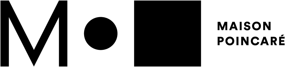 It soon became clear that we needed to find a good name. Indeed, “Maison des mathématiques” was not specific enough, as the whole institute had been known as the “House of mathematics and theoretical physics” for a long time. However, we liked the warm connotation of the word Maison. This is how we came up with the name “Maison Poincaré,” after a public poll. This name inspired the graphic designers working with du&ma, who proposed a logo (Figure 7) based on a pun in French that was already used by the Poincaré family themselves (“point” meaning dot and “carré” meaning square).