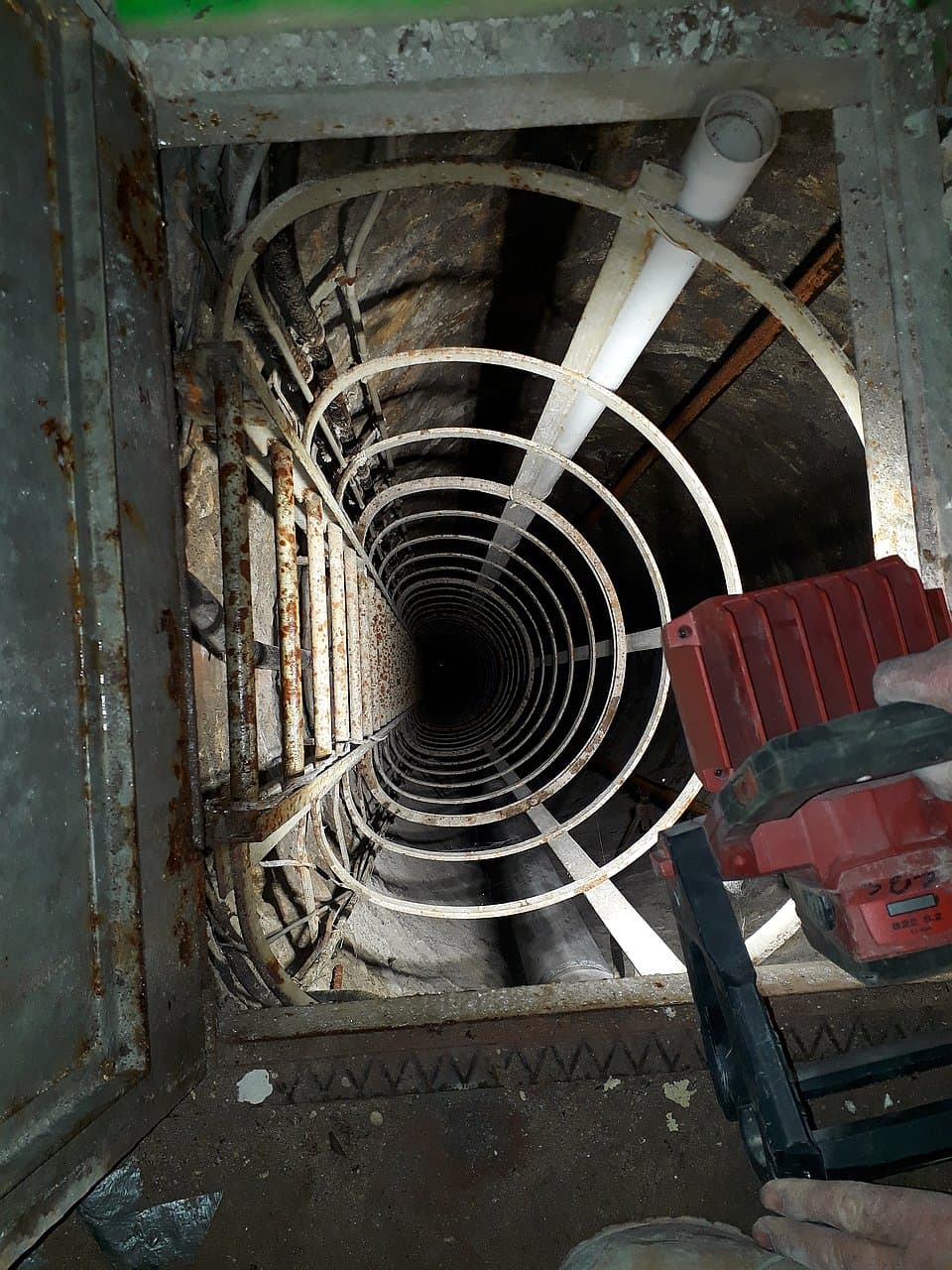During the construction work I had the opportunity to see an ancient shaft (Figure 11) leading to 30-meter-deep experiment galleries which I would not have dared to explore even if I had been allowed to do so. We had very little information on these galleries, but I was originally told that they were used by Marie Curie (1867–1934) herself, which sounded quite exciting. An extensive search of the archives produced only two pictures and a sketch map. In particular, I found out that this shaft had been built to connect the building’s basement to underground old quarries… in 1935. Too late for Marie Curie! Despite my disappointment, I find it moving to have seen this shaft before it was sealed up by half a meter thick concrete disk for security reasons. Visitors of the museum can nevertheless see a glass disk indicating its location in the temporary exhibition space, together with a panel displaying the sketch map.