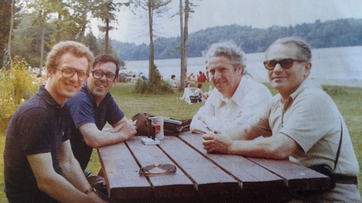 An important moment in our scientific collaboration, which I also recalled recently in the lecture I gave in Budapest in June 2024 on the occasion of the Big Five Centenary, which I will discuss later, took place in July 1979. We were with many other mathematicians in Montreal for a summer school organised by the local department of mathematics, which lasted a month and in which László was one of the lecturers. During a picnic on a weekend, László proposed that I begin the systematic study of modules on valuation domains with him, which had been studied up to then by various algebraists, but not in a systematic way. Of this particular episode there remains as a memento a photograph (see Figure 1) that shows, around a picnic table, László with Mario Fiorentini, a recently deceased Roman surveyor who was well known in Italy not only for his mathematical merits, with Adalberto Orsatti and with me.
