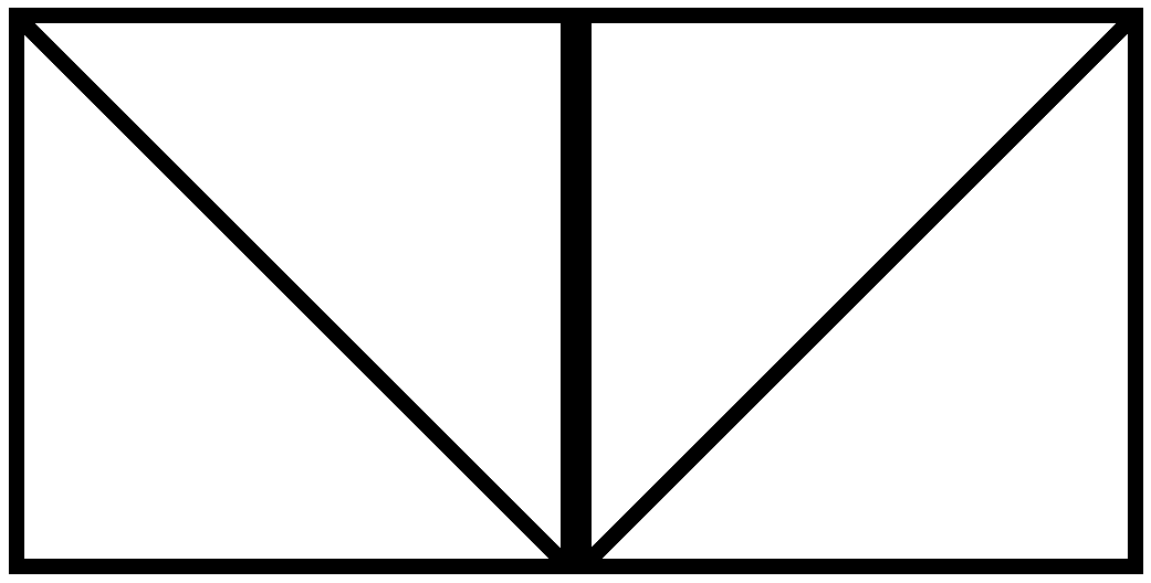 We now add a diagonal to each: there are, a priori, two possible choices of the diagonal in each of the two squares, so four possibilities; but they are two by two identical by flipping, which leaves us with the two configurations: