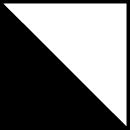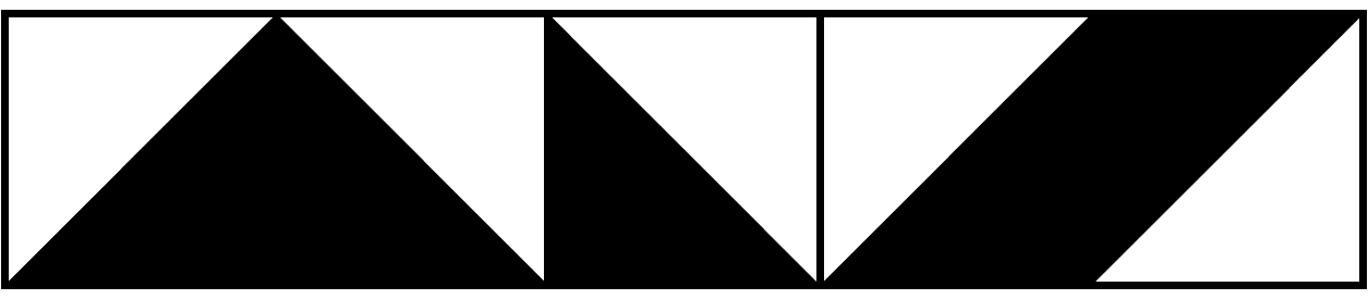 For his series of paintings Transitions, the artist has developed a systematic procedure14Although he might occasionally deviate from it, over the course of the two hundred paintings in this series. determined by the two mathematical ingredients presented above: Truchet tiles and Ulam’s spiral. In fact, to the four tiles obtained by turning the Truchet tile in Figure 2, he adds two: an all-white square and an all-black square. It is convenient to codify them as in Figure 9.