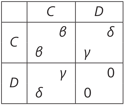 The process of assortment is abstract, but we assume that it has finite expectation and variance . Members within each group are then randomly paired off to play one iteration of the prisoners’ dilemma against another member of their group. All agents then return to the overall population.