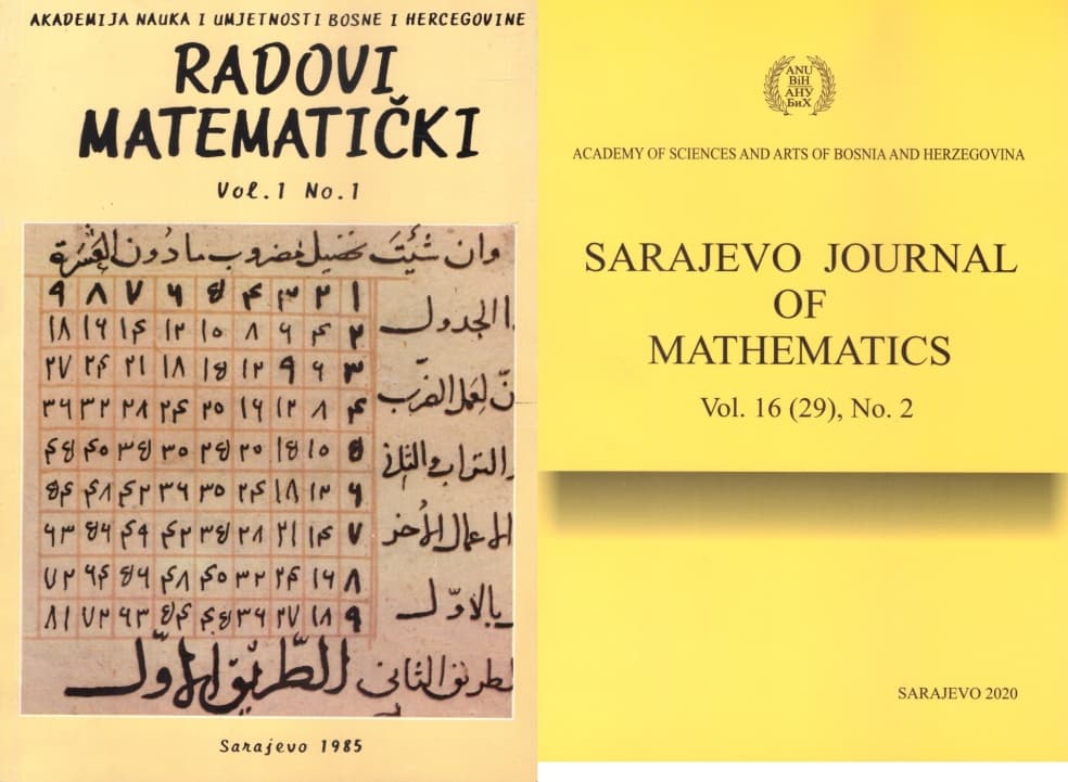 The Academy of Sciences and Arts, the University of Sarajevo Department of Mathematics and the Mathematics Section of the Society of Mathematicians, Physicists and Astronomers joined efforts to cofound the scientific journal Radovi Matematički, which in 1985 replaced an earlier publication of the Academy, Radovi Odjeljenja prirodnih i matematičkih nauka Bosne i Hercegovine. The decision to found this journal reflected the growing need for an independent mathematical journal with an international editorial policy.
