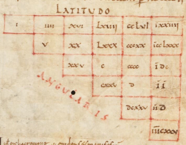 A. M. S. Boethius (early 10th c.), De institutione arithmetica., fol. 4v. Source: Medeltidshandskrift 1 (Mh 1), Lund University Library