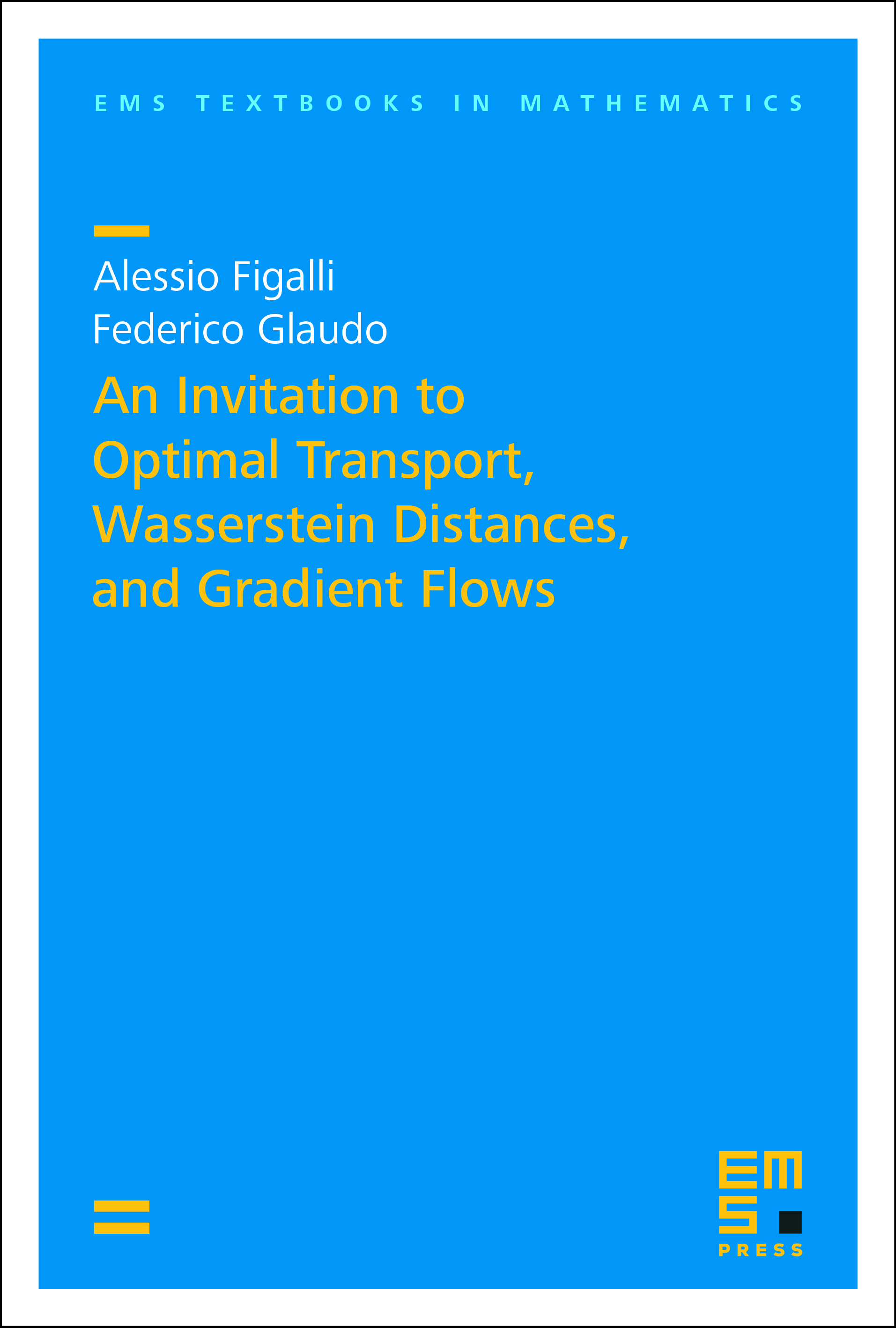 Alessio Figalli and Federico Glaudo, An Invitation to Optimal Transport, Wasserstein Distances, and Gradient Flows, EMS Press, 2021, 144 pages, Hardback ISBN 978-3-98547-010-5, eBook ISBN 978-3-98547-510-0